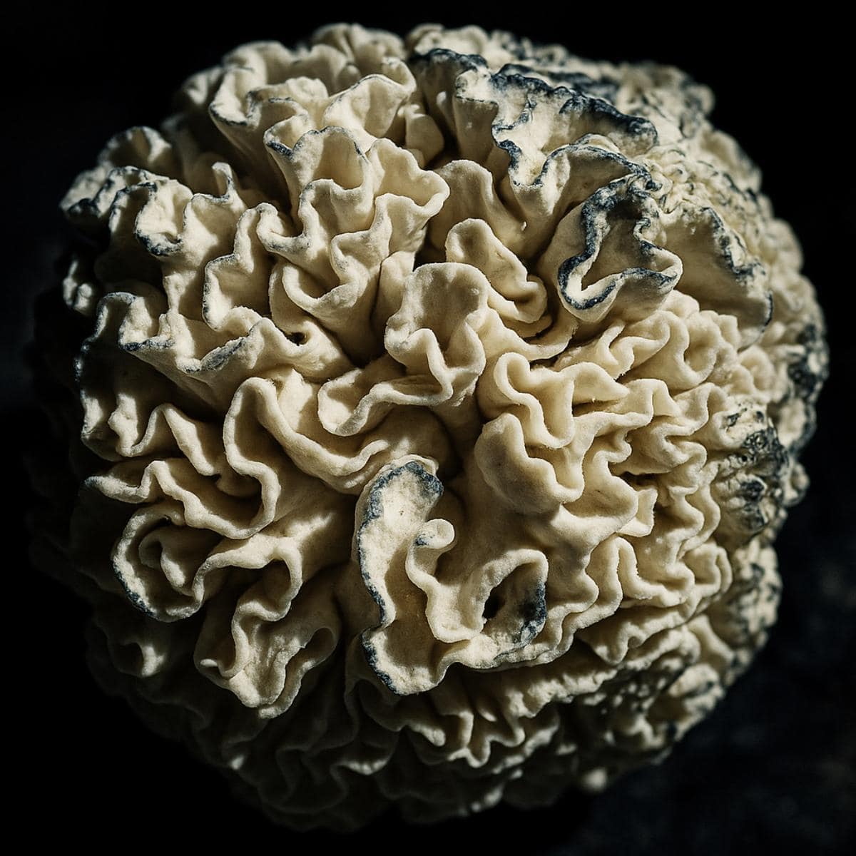 The strain’s sterile nature and brain-coral appearance make it particularly valuable for studying genetic mutations and unusual growth formations.
